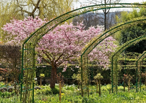 En avril, le Clos Normand rentre alors dans son plein épanouissement. Les floraisons les plus notables sont celles des grands hybrides, narcisses et jonquilles, et des tulipes.(…) C’est également à cette époque que deux des arbres emblématiques du jardin de Monet, le pommier et le cerisier, commencent à refleurir.(…)