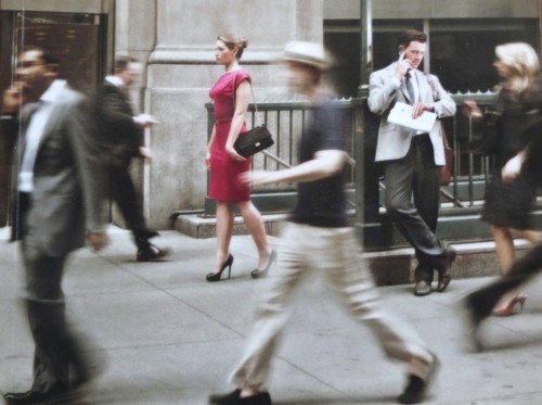 La seule personne à n'être pas "floue" est cette dame en rose et haut perchée... et qui ressemble étrangement à une poupée de cire dans une vitrine....