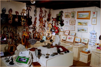 Pour répondre à la première question, devinerez-vous ce qu’il y a derrière cette fenêtre ? pénétrons dans La Chaumière des Saveurs et de l’Artisanat. Des artistes y exposent, et l’on peut y acheter les produits des artisants locaux et des producteurs du terroir.