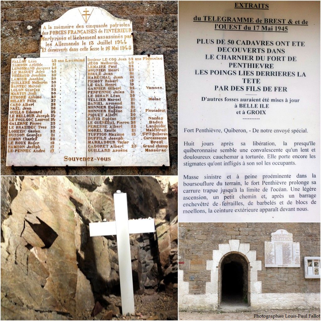 «On sort les cadavres. Le premier corps porté sur une civière sort de lʼantre funèbre. Un silence accablant règne au fond de la douve. Le cadavre qui se disloque et dont une chaussure se détache, est déposé sur lʼherbe. » Récit dʼun journaliste dépêché au Fort de Penthièvre, le 17 Mai 1945. Trois jours plus tard, un télégramme est envoyé à Locminé: «25 malheureux Locminois découverts à Penthièvre – Enterrement aujourdʼhui, Lamour ».